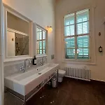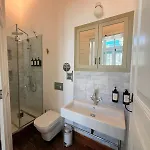 Cet établissement 1860 Rum Evleri comprend une salle de bains avec une toilette séparée et une douche. Un sèche-cheveux, des draps de bain et des pantoufles sont fournis pour le confort des clients.